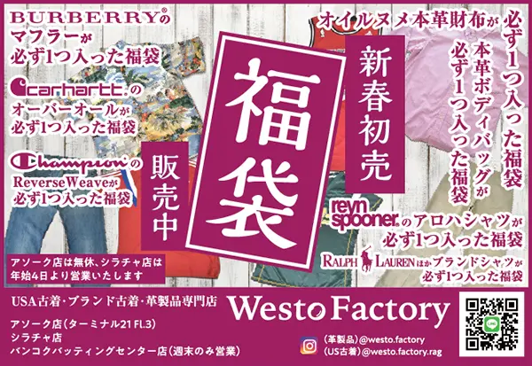 バンコク・シラチャに3店舗を展開する、バッグ・革製品専門店「Westo Factory」では2022年の「新春初売り福袋」を販売いたします!