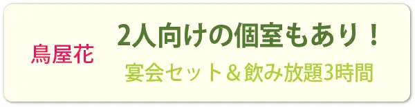 鳥屋花 2人向けの個室もあり! 宴会セット&飲み放題3時間