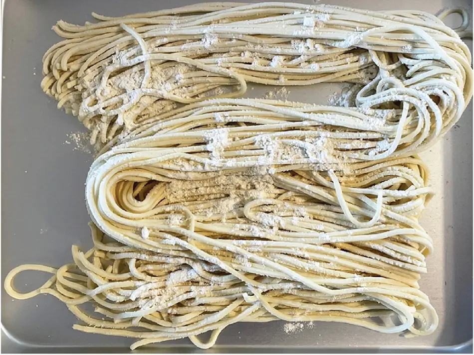 日本では職人が愛用する卓上型業務用製麺機で、麺のサイズも自由に変えられます。細麺から太麺、さらに手揉み麺まで作ることが出来ます。麺も長方形と円形ノズルを2種類ずつ用意しています。