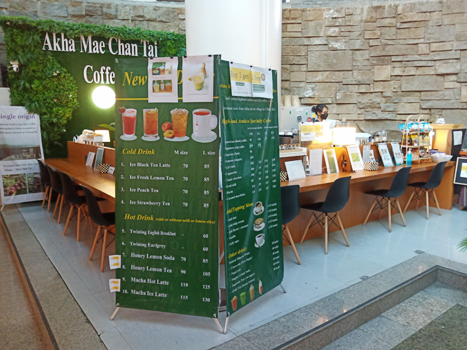 そしてようやく、コーヒー豆を直接販売できるようになりましたが、タイ北部ではコーヒー豆を売るマーケットは少なく、バンコクでコーヒーショップを開店してメーチャン村のアラビカ種の認知度とブランド名を高めることにしました。