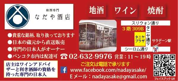 タニヤプラザに本店がある「なだや酒店」は、スクムビット・ソイ39に支店があるので、近くに住んでいる人は店頭へ足を運んでみて下さい。