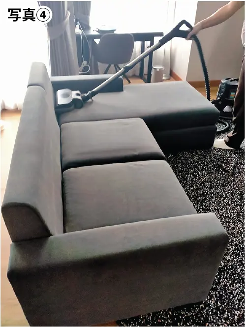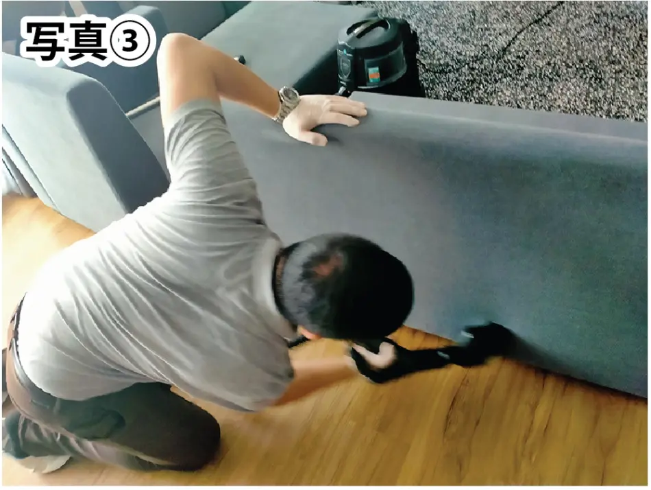 (写真3)ソファーのクッション、本体をくまなく、何回も何回もクリーニングしてくれました。
