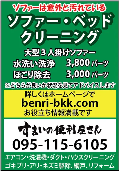 (写真4)このサイズの大型ソファーで、ほこり除去が3,000バーツでした。
