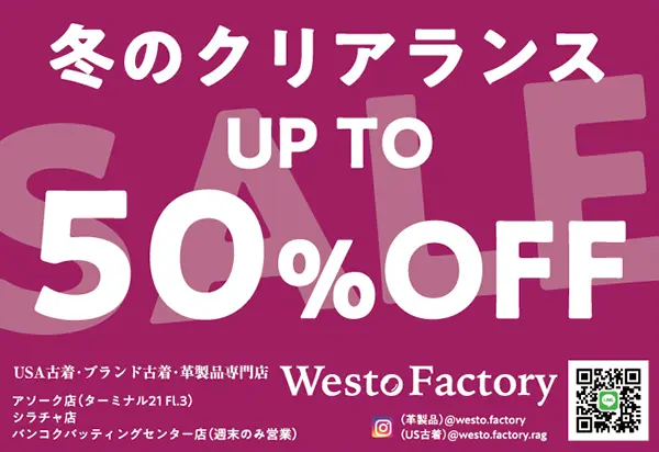 バンコク・シラチャに3店舗を展開する、バッグ・革製品専門店「Westo Factory」では最大80%OFFのセールを開催中です!