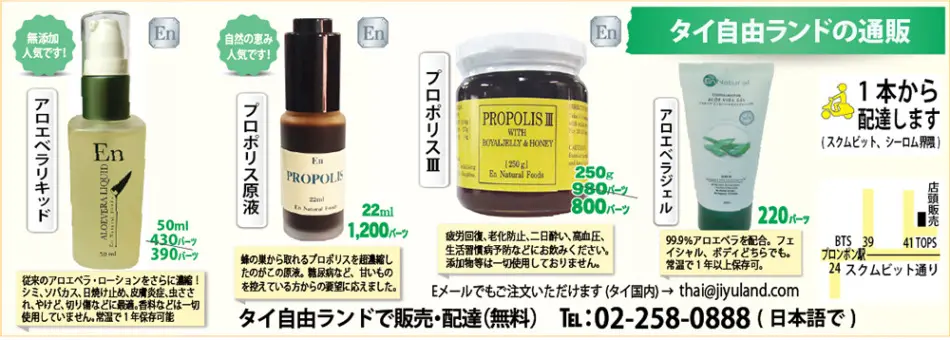 タイで健康食品を販売して30年以上の実績があるEn(エン・ナチュラルフーズ)製の「プロポリス原液」。