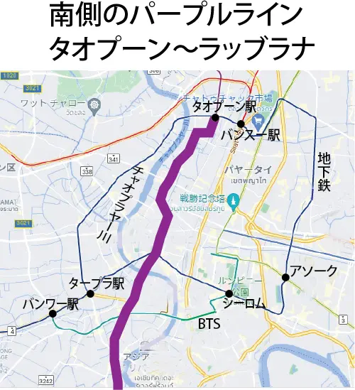 タオプーン駅からチャオプラヤー川に沿って南下し、ラッブラナ駅に至る23.6 km。