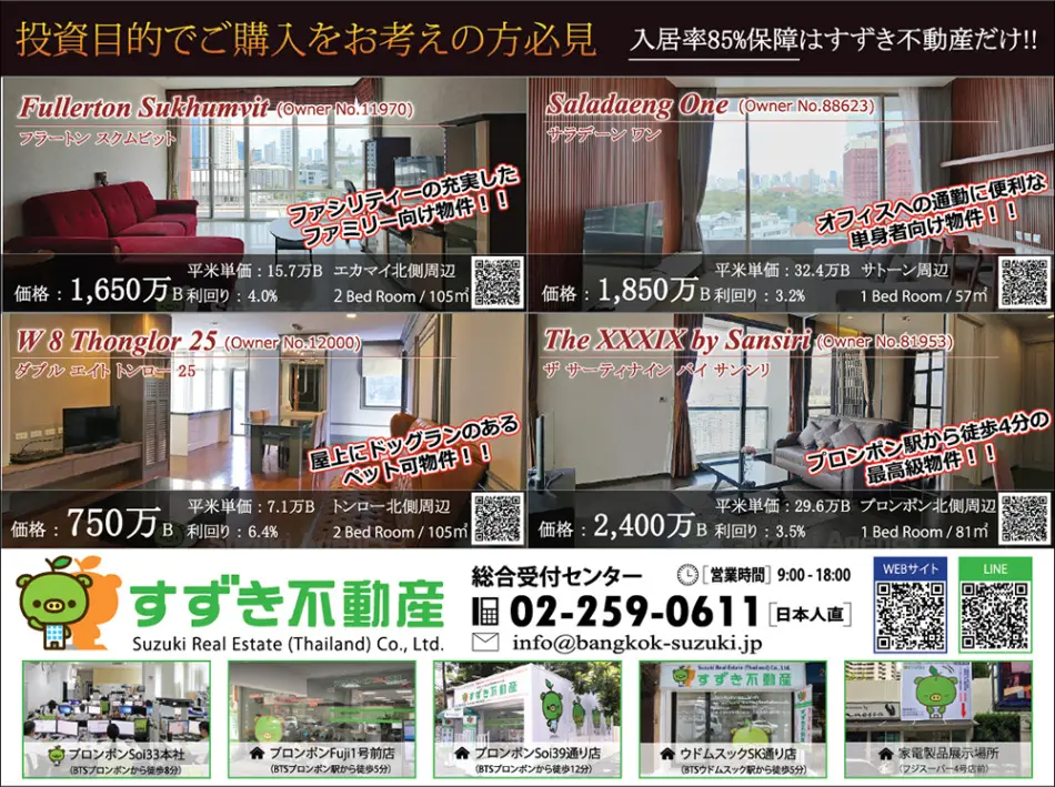【すずき不動産の販売コンドミニアム】フラートン・スクムビット 100平米超えファミリー向け物件
