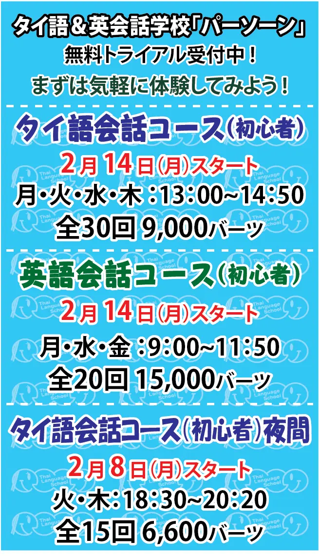 レッスン生にさまざまな特典がある「パーソーンタイ語学校」では、たとえば、急な用事でレッスンを休むことになった場合、振替受講ができるので安心です。