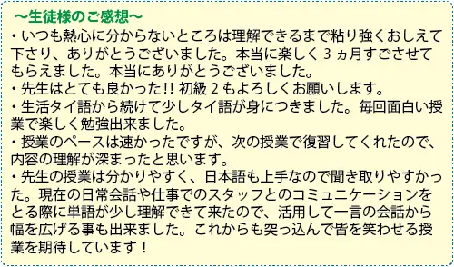 授業は日本語で安心のひまわりタイ語学校 エカマイ駅直結で通いやすい