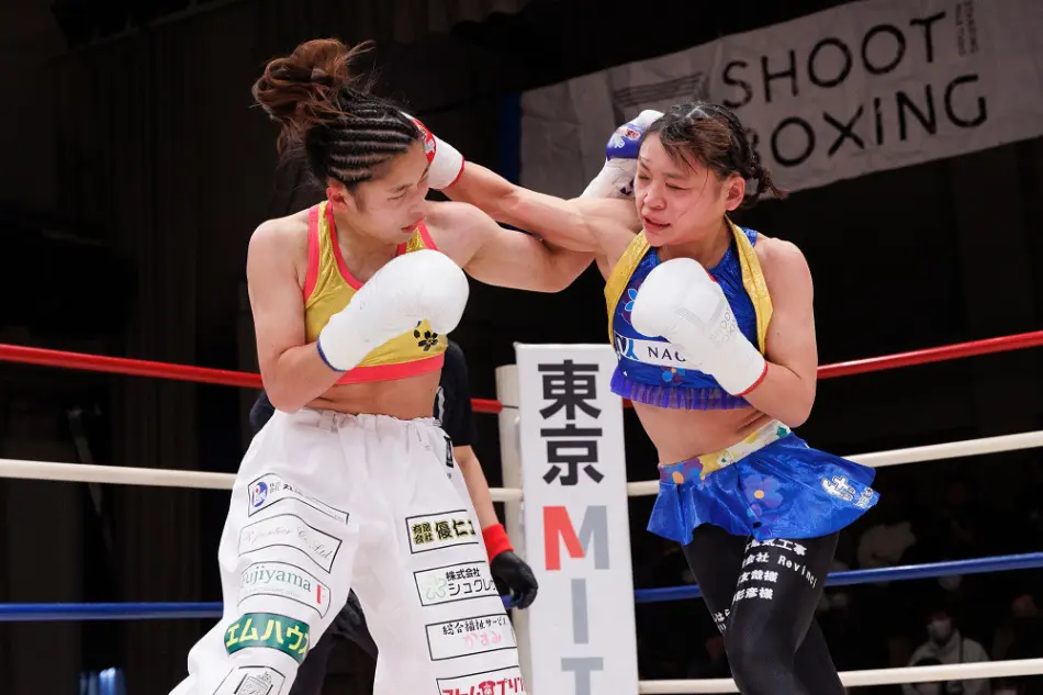 MISAKIが3度目の正直でついにSB王座を獲得 シュートボクシング(SB)の『SHOOT BOXING 2021 Champion Carnival!』が、2021年12月26日(日)東京・後楽園ホールで開催された。新設された「SB日本女子アトム級(-46.0㎏)王座」をかけてMISAKI(TEAM FOREST)とRISE QUEENフライ級1位・田渕涼香(拳聖塾)が対戦し、みごとMISAKIがSB日本アトム級初代王座に就いた。 MISAKIは、2017年寺山日葵を破り、J-GIRLSミニフライ級王座に就いているものの、ホームのSBのリングでは2018年MIOのもつSB日本女子ミニマム級王座に挑戦するも判定負け、2019年「SB日本女子ミニマム級王座決定トーナメント」では、決勝で田川女神に敗れるなど王座獲得には至っておらず、まさに今回は三度目の正直を目指しての出場となった。 これまでSB日本女子ミニマム級(-48.0㎏)トップ戦線で活躍してきMISAKIだが、女子アトム級の新設を受けて階級を下げ、悲願であったSB日本女子アトム級に挑み、見事に王座を獲得した。
