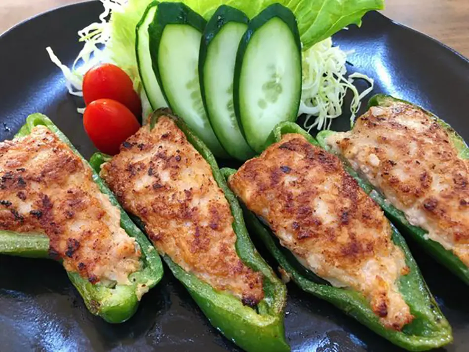 例えば、ピーマン肉詰め、ソースはハンバーグソースかおろしポン酢をお選びください。ホイコーロー、カレイ西京焼き、イカ酢味噌和え、焼き茄子。Facebookでメニューを見て、LINEで申し込みください。