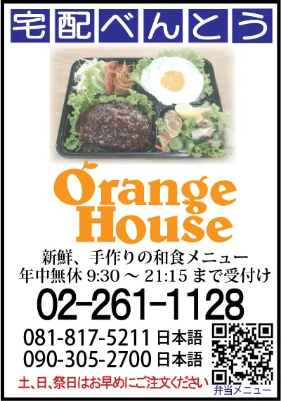 宅配弁当でおなじみの「オレンジハウス」では、宅配は主に2種類。1つはお弁当の宅配。こちらはメニュー(QRコード)を見て電話でオーダーください。