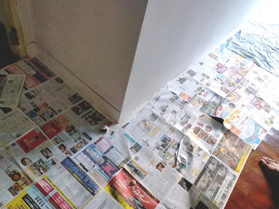 今までの業者はこのようなことはしませんでした。腕がいいから養生しないのかもしれませんが、そうした仕事の後をよく見ると、小さい塗料の白い点が床に飛び散っています。これが当たりまえなのだろうと、思っていましたが、そうした飛び散りが便利屋さんの場合、全然ありませんでした。