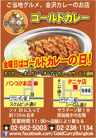 金沢カレーの店「ゴールドカレー」はバンコクと近郊エリアで10店舗以上展開していますが、BTS駅から直結で行ける便利な場所にも出店しています。