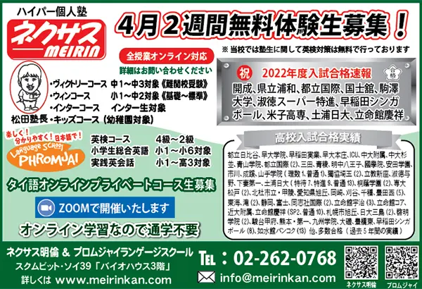 ネクサス明倫は有名進学校の合格実績も豊富 バンコクで25年の経験と実績 4月末まで2週間無料体験受付