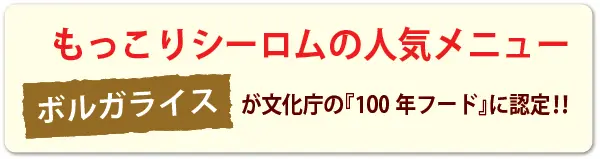 ボルガライスは、この度、日本の文化庁が本年度創設した食の認定制度、世代を超えて継承すべき食文化「100年フード」に認定されました。