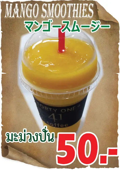 カオニアオマムアン フォーティーワン・コーヒーで販売中 旬のマンゴースムージーも