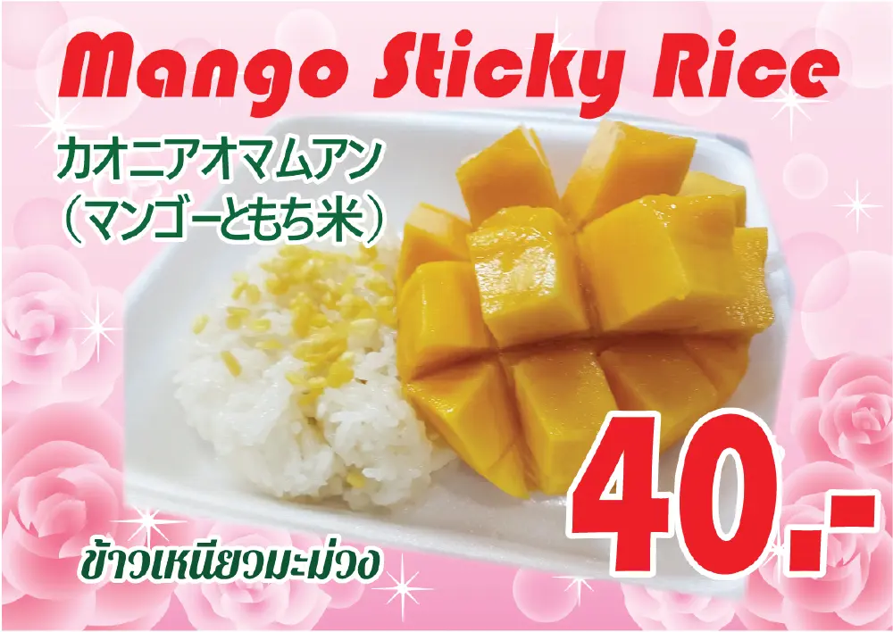 今年もカオニアオ・マムアンの季節になったが、フォーティーワンコーヒー(Foyty One Coffe)では破格の40バーツで販売中。最高に甘いマンゴーとカティ(ココナッツミルク)をかけたもち米をいっしょに食べると最高!禁断の甘いと甘いの組み合わせ。今年もぜひ試したい。合わせて旬のマンゴースムージーは1つ50バーツだが、3つまとめて購入なら100バーツなので、この際、まとめ買いがお得!場所はスクムビットのソイ41を入ってセブンイレブンの向かい。6月末まで販売中。