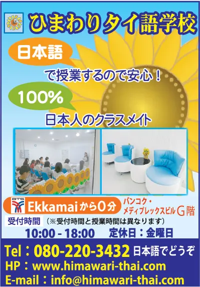 BTSエカマイ駅から直結通路で行けるバンコク・メディプレックスビルG階にある「ひまわりタイ語学校」の特長を紹介いたします。