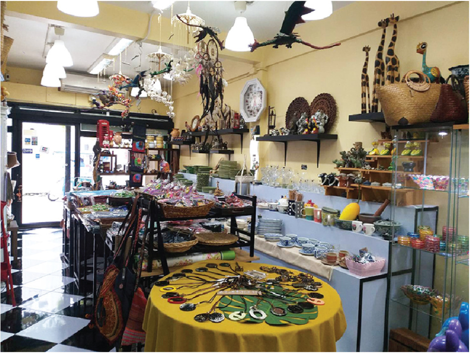 タイ文字時計やタイ産の食器など、普段使いの雑貨や美容品、日本帰国時のおみやげ探しにもぜひ立ち寄ってみて下さい。