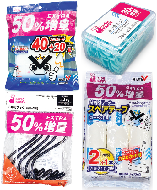 日常生活でよく使う消耗品が30~50%の増量となっているので、近くのダイソーで確かめてみて下さい。