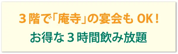 3階で「庵寺」の宴会もOK! お得な3時間飲み放題
