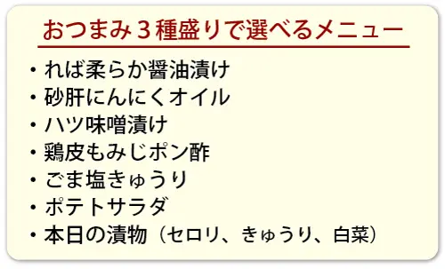 土日はランチタイムから営業していて、炭火焼き以外のメニューがオーダーできるので、すぐに出てくるおつまみもおすすめです。おつまみメニューはどれも1品120バーツですが、3種盛りは180バーツで好きなおつまみ3品を選んでオーダーできます。昼のみは50バーツからと格安。