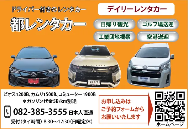 バンコクからのゴルフ場送迎や日帰り小旅行をするなら運転手付きレンタカーサービスの「都レンタカー」が便利です。