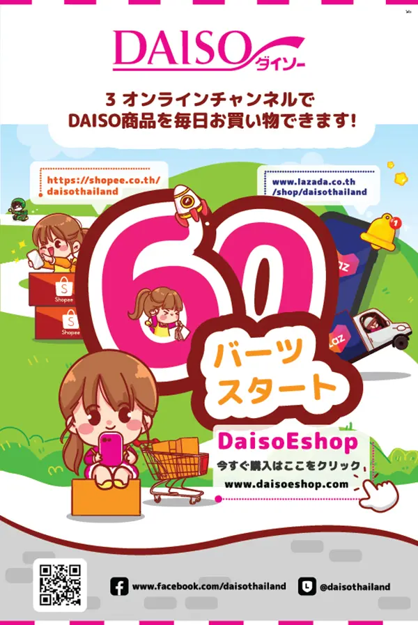 タイでは60バーツショップでおなじみの「ダイソー」は、オンラインショップでも商品を購入できます。