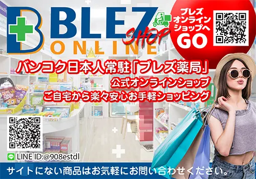 在タイ日本人におなじみの「ブレズ薬局」では、自宅で簡単に注文できるオンラインショップを開設しています。オンラインショップでは、月ごとの特別プロモーションを実施しており、9月はブレズ薬局オリジナルプロテインと脂肪燃焼に効果のあるLカルニチンのサプリメントセット、ダイエットに最適なオーガニックハーブのサプリメント、肺や気道をきれいにするオーガニックハーブのカプセルが通常よりもお得な価格で購入できます。オンラインショップ限定価格なので、下記広告内のQRコードからオーダーして下さい。 なお、オンラインショップで300バーツ以上購入すると、エリア限定ですが配達料無料で届けてもらえます。 オンラインで注文して、受け取りをブレズ薬局各店(漢方ドリンクの店頭受け取りはブレズ漢方薬局のみ)にすることもできます。