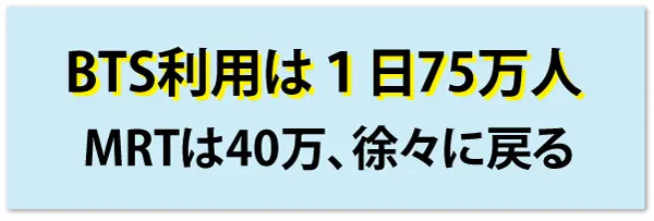 BTS利用は1日75万人、MRTは40万人、徐々に利用者が戻る