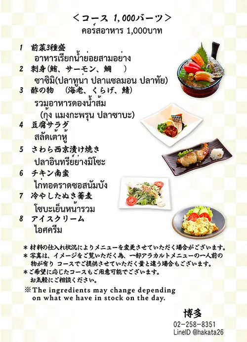 2日前までに予約すれば、1,000バーツからのコース料理、鍋コースがあるので、宴会にも最適です。500バーツの2時間飲み放題もあるので、組み合わせればとってもリーズナブル。