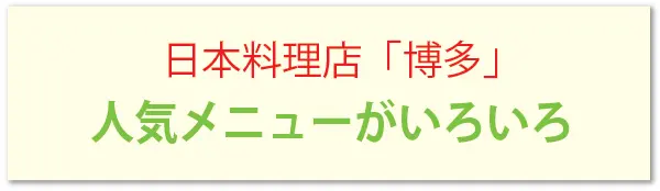 ほかにも寿司や天婦羅など定番の和食から他のお店にあまりないようなメニューもあるので、ぜひ足を運んでみてください。メニューについては、博多のホームページで見られます。