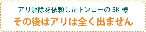 おかげさまで、今はアリは全然出ません。安心して生活できます。ありがとうございます。