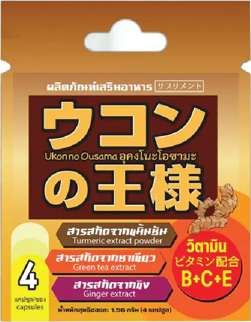 ほかには二日酔い防止のサプリメント「ウコンの王様」はウコン、緑茶、生姜、ビタミンB、C、Eを配合した二日酔い防止のサプリメントです。飲酒前に1回2錠を服用することで、肝機能を向上し、二日酔いを防止します。1袋4錠入りで90バーツ。