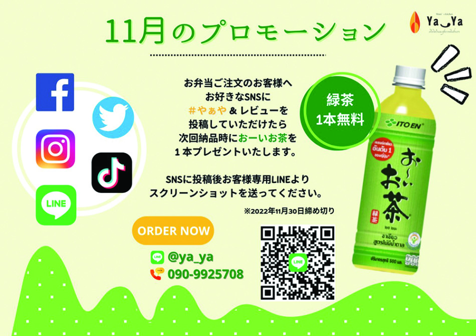 昼ならその日の午前10時~12時、夕食ならその日の午後3時から5時には届けます。配達エリアはスクムビットのソイ21~23、ソイ16~42までです。レビューいただくと緑茶プレゼント。上と下の広告を参照で。