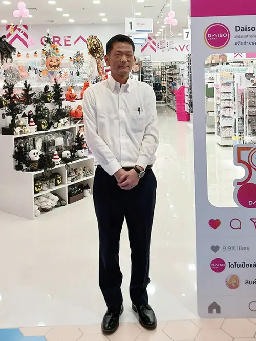 ダイソータイランドの花岡秀行社長。ラマ3世でオープンしたターミナル21で