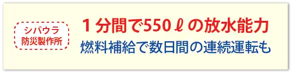 シバウラ防災製作所の消防ポンプFT300は1分間で550ℓの放水能力