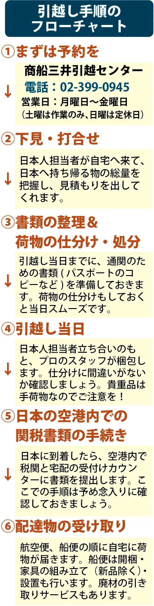毎年2月から3月にかけては、日本人駐在員やその家族の本帰国のシーズンです。海外引越し90年以上のノウハウと実績を持つ「商船三井引越センター」によると、例年は年明けから年度末の引越し予約が重なりますが、今年は11月の段階で2月~3月の引越し予約が入っているとのことです。帰国の日程が決まれば、早めに引越しの予約をしましょう。