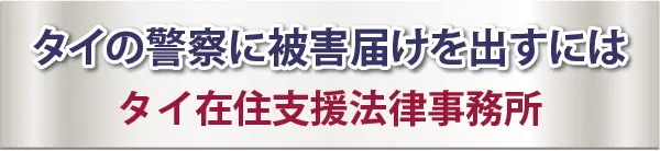 タイ警察に行く段階で、通常は弁護士がタイ語で被害届や告訴状を作成し、それを持って警察へ行き被害申告します。弁護士が付き添い警察署に行く場合が多いですが、日本からの依頼者でも、弁護士委任状に署名をして弁護士を代理人とできます