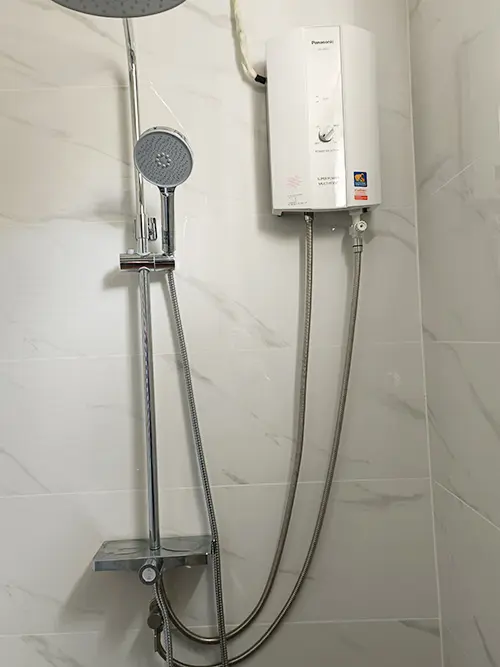 「これ、やってくれ」というと、すぐに材料を買いに行って取り付けてくれました。いくつか頼みましたので、3日間来てくれました。天井裏に電線を通し、給湯器も取り付けてくれました。水道管もつないでくれ、排水管も取り付けてくれました。シャワーヘッド掛けやタオル掛けも付けてくれました。必要なことをみなやってもらいました。おかげでやっと生活できるようになりました。前の業者とやりとりしていると、イライラして、こちらが精神的におかしくなってしまいます。