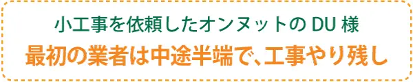 中途半端でやり残しの工事がいくつもありました。仕方なく、以前仕事の関係で知っていた「すまいの便利屋さん」に連絡すると、さっそく来てくれました。