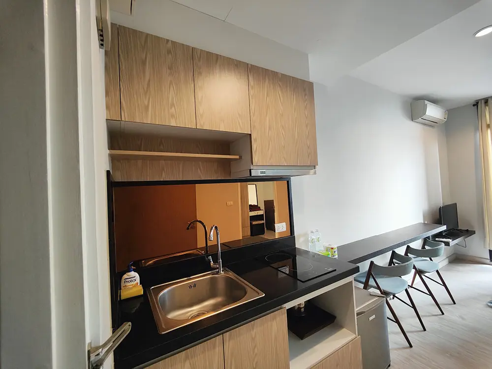 まず、「モベンピック・エカマイ(Mövenpick Ekkamai )」は1ベッドルーム31㎡で賃料は1ヵ月18,000バーツとなります。場所はエカマイ通りを北上し、ペッブリー通りにぶつかる近くに立地します。