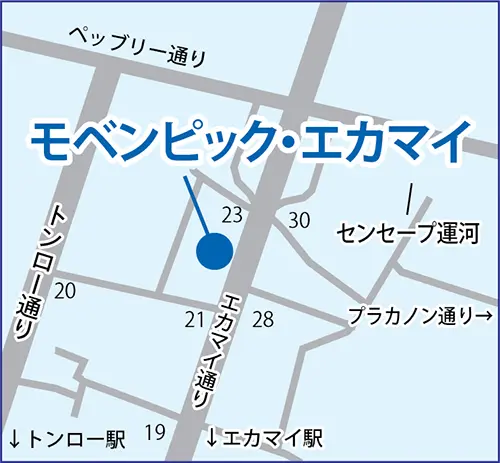 まず、「モベンピック・エカマイ(Mövenpick Ekkamai )」は1ベッドルーム31㎡で賃料は1ヵ月18,000バーツとなります。場所はエカマイ通りを北上し、ペッブリー通りにぶつかる近くに立地します。