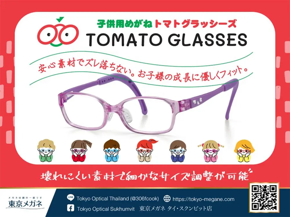 日本と同じサービスが受けられる「東京メガネ」では、安心素材でズレ落ちない「トマトグラッシーズ」を販売しています。
