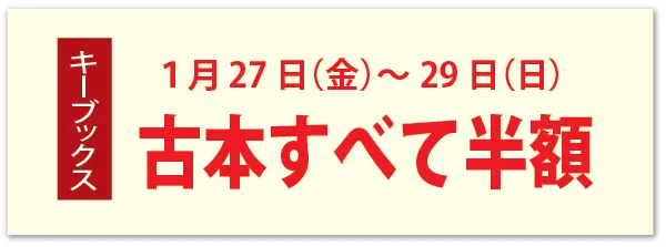 「キーブックス」で1月27日(金)~29日(日)は古本すべて半額セール