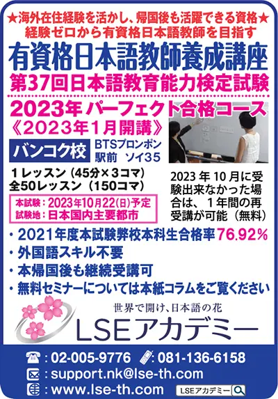 下記リンクをクリックして申し込めます。教室の場所はスクムビット・ソイ35のGSマンション3階、3Cです。連絡先は下の広告を参照で。