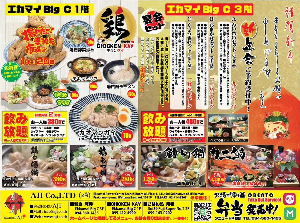 エカマイのパワーモール3階にある「和食庵寺」では、新年会の予約を受け付けています。
