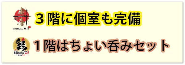 1階の「チキンケイ」ではちょい呑みセット300バーツ、3階の「和食 庵寺 」は個室も完備