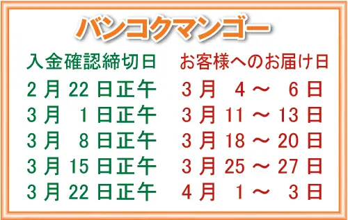 タイ産の完熟マンゴーを日本へお届けするサービスは「バンコクマンゴー」で受け付けています。